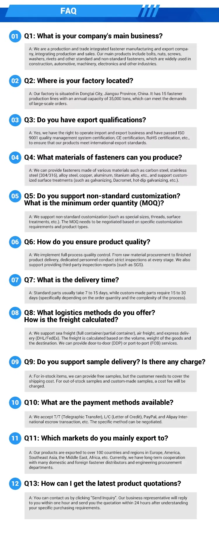| Standards | DIN, GB, ISO, JIS, BA, ASME, ASTM |