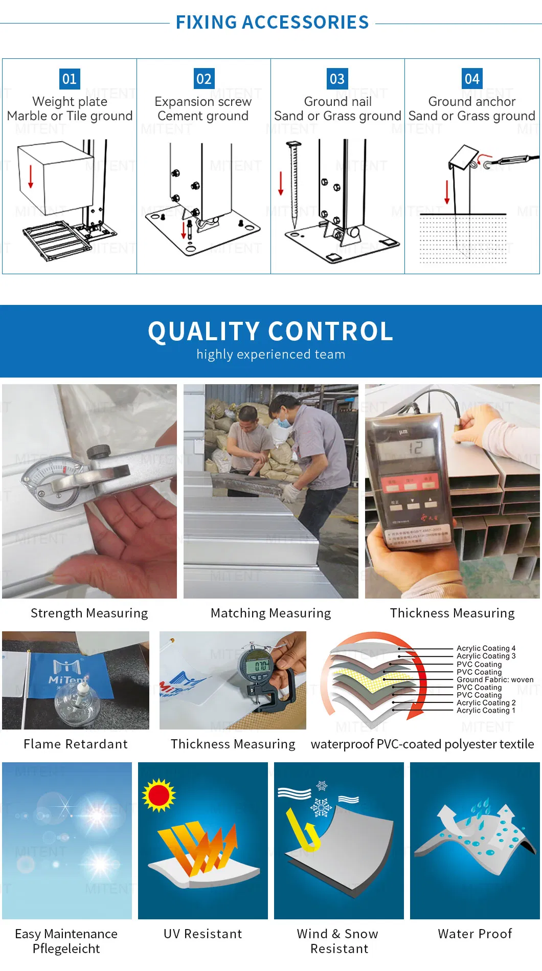 Our tent range offers extraordinary versatility, with span widths from 3m to 50m. Length can be customized in bay distances of 3m or 5m.
